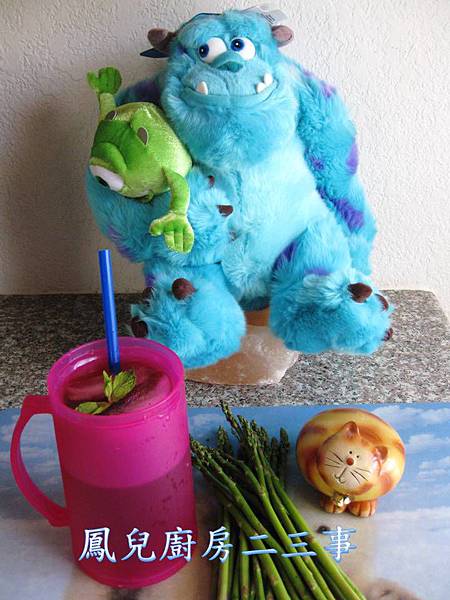 4)小鳳兒就是放入冰片糖,這是屬於紅糖的一種,帶有香氣,所以強走了蘆筍本身的味道,最後才決定放入薄荷葉,綜合一下整體的味道