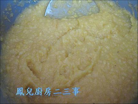 6)將所有材料全部攪拌成泥,過程中有油,所以一樣要繼續攪拌,讓所有材料混合均勻{不然油水會分離唷}