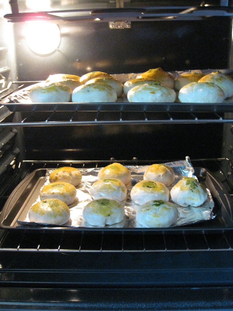 不過第二次做,從早上七點開始煮綠豆,製作綠豆沙,中間休息兩三個小時,下午兩點多就已經放入烤箱中