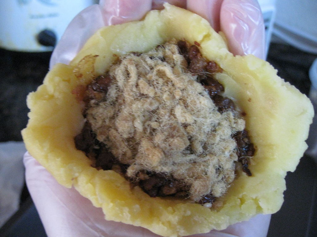 因為記憶裡的口味,是肉燥與肉酥的結合,第一次用肉酥,無法包入內餡中,太鬆散了