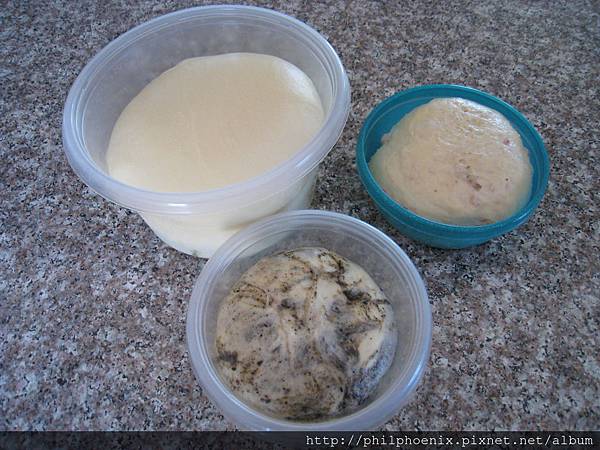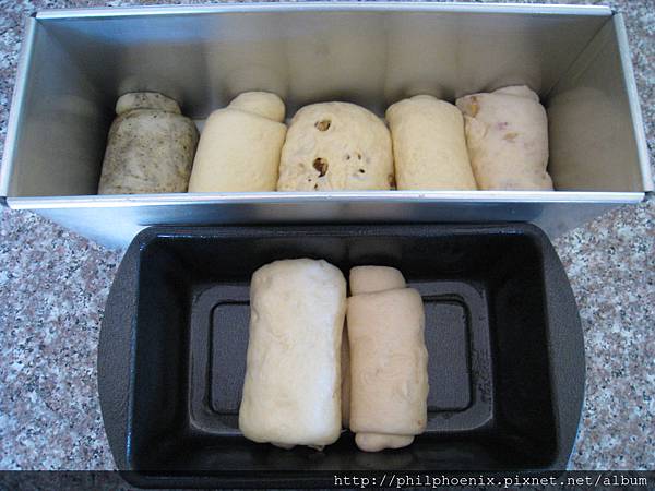 五分之一坐黑芝麻吐司,五分之一芋頭吐司,第一次發酵完畢
